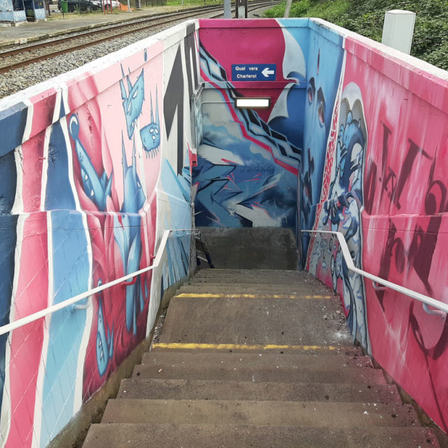 Décoration de la gare de Marchienne Zone avec une partie de notre équipe : Kay, Adrien Roubens, Orkez, Dake, Diko & Trevor